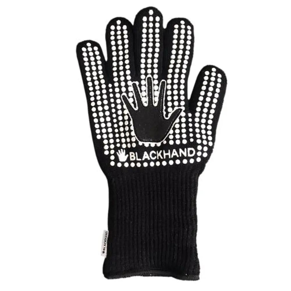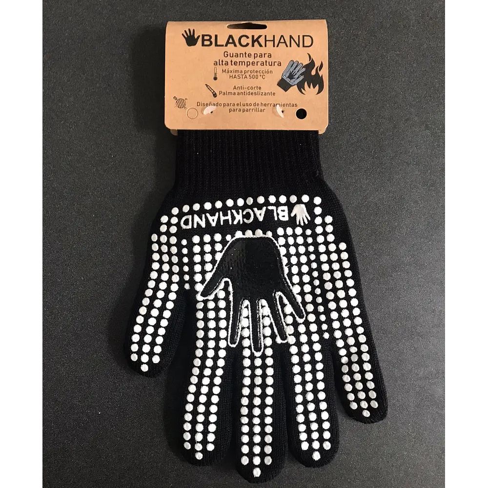 Los guantes BlackHand están diseñados para proteger las manos del calor y las llamas mientras se cocina a la parrilla. Están hechos de una combinación de materiales, incluyendo fibra de aramida, que es un tipo de fibra sintética con características excepcionales de resistencia al calor y la abrasión. Soporta hasta 500°C sin perder la flexibilidad y el movimiento de las manos, lo que los hace cómodos para utilizar por largos periodos. Agarre seguro que permite sujetar artículos calientes y pesados sin riesgo de deslizamiento. Protección contra llamas, lo que los hace ideales para cocinar en la parrilla y fuego abierto. Precio por unidad de guante.
