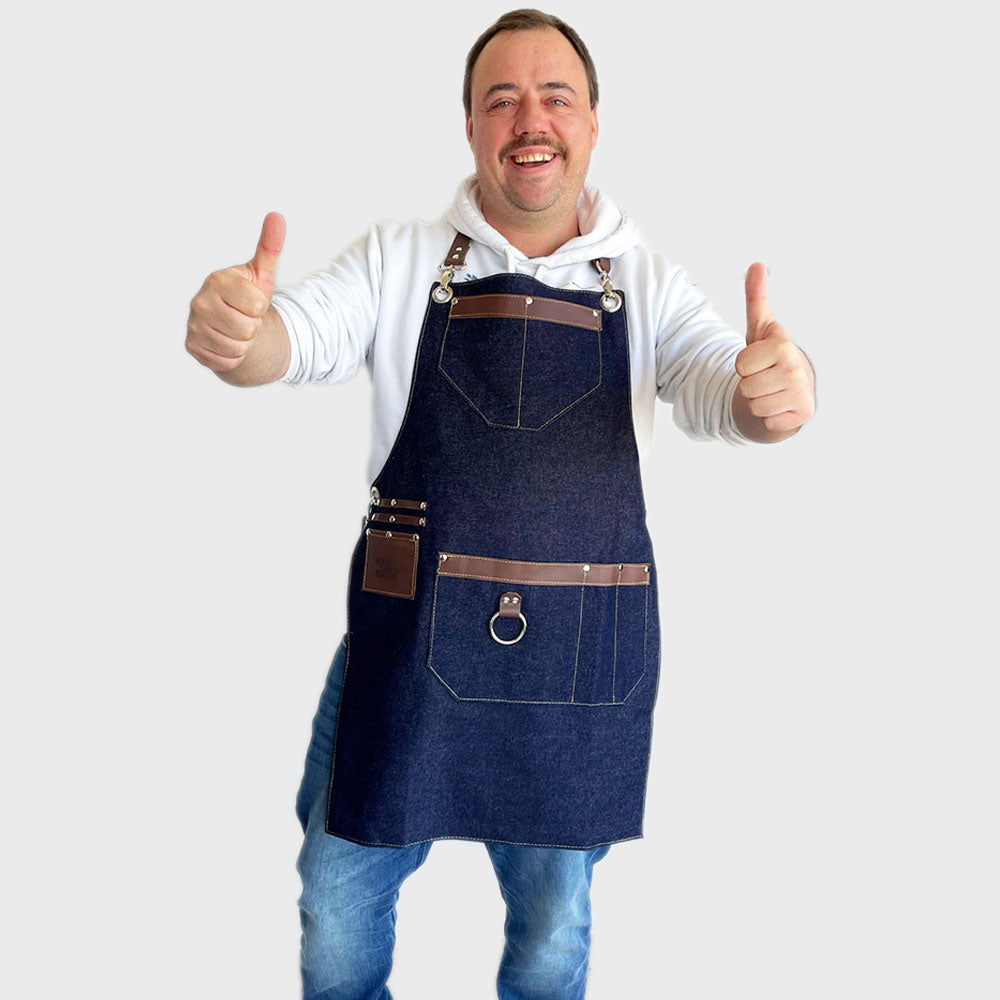 Para parrillar con estilo, comodidad y seguridad. Esta nueva pechera PK esta confeccionada con mezclilla de alta calidad, 100% forrada y con aplicaciones de cuero natural. La puedes ajustar tanto en la cintura como en la parte superior. Es también una excelente opción para regalar.