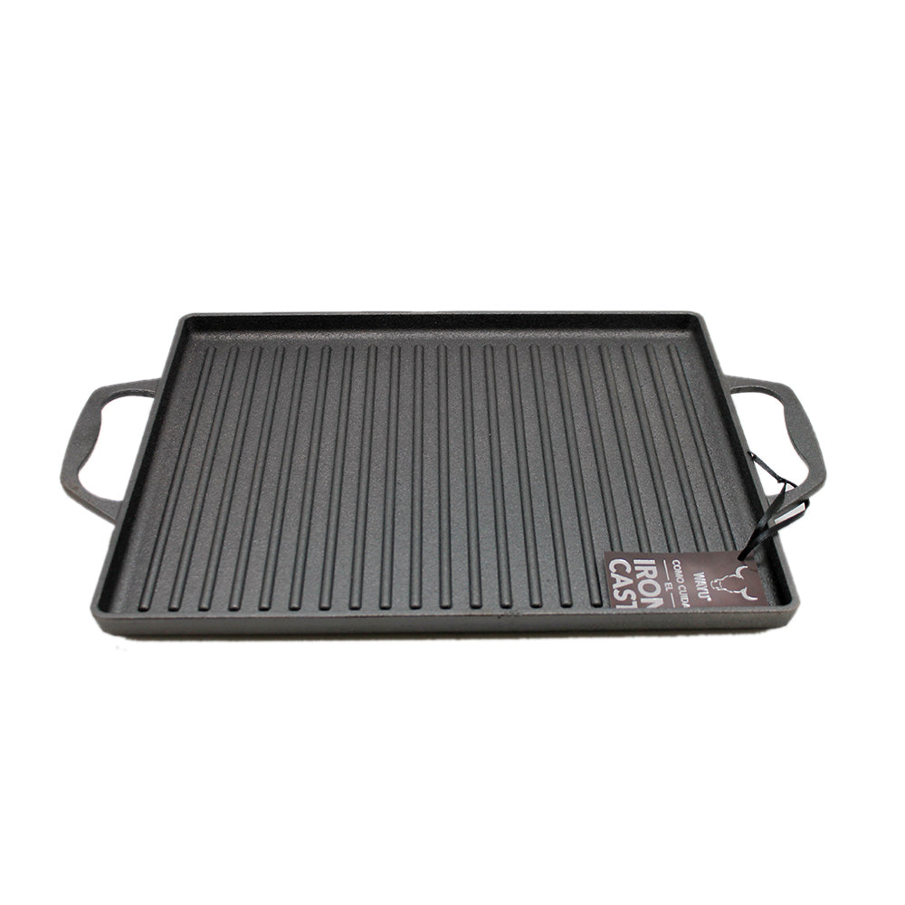 Para los fanáticos de la parrilla, traemos esta plancha de Hierro fundido para hacer todo tipo de comidas a la plancha; Carnes, pescados, verduras. Todo queda a la perfección en esta plancha. Se puede usar en prácticamente cualquier lugar, incluso directo en la brasas de una fogata o parrilla. Con asas para una perfecta manipulación.